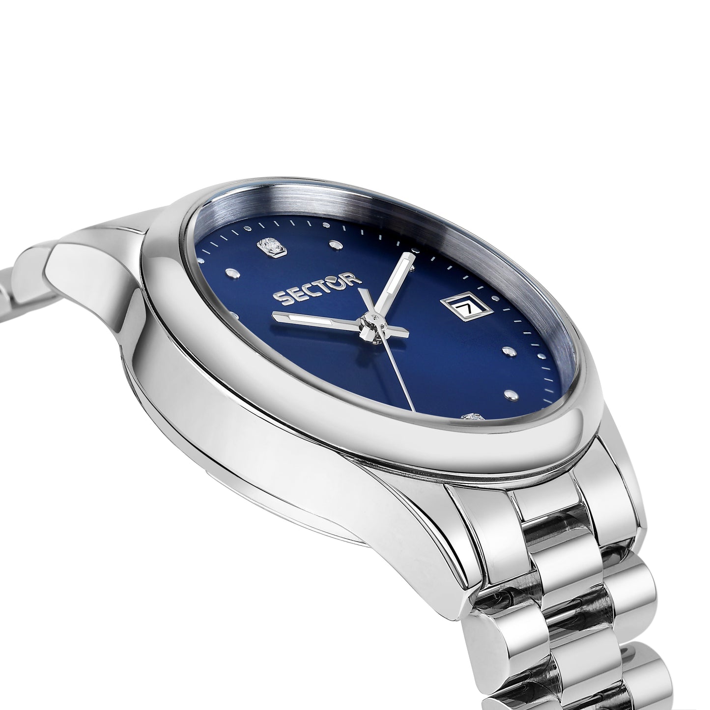 Orologio Donna SECTOR della collezione 230. Orologio con movimento MVT. M2115, funzione tempo e data. Quadrante: 3 lancette indice di pietra c/datario a ore 3, finitura Acciaio. lucido, colore BLU. SUNRAY. Tipo cinturino: Solid. Materiale cinturino: Bracciale in Metallo di colore Acciaio. Cassa in Vetro minerale di dimensioni 32. Chiusura: Fibbia DEPLOYANTE con pulsanti. Resistenza all'acqua: 10 ATM. Peso: 98 gr. Codice prodotto: R3253161543. Colore: ARGENTO. Materiali: Acciaio. Confezione: scatola originale SECTOR. Garanzia: garanzia internazionale SECTOR