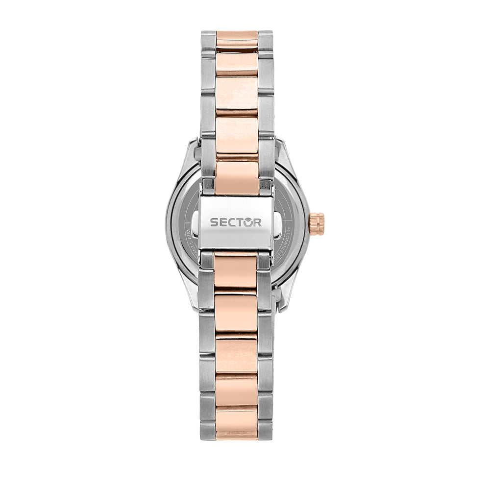 Orologio Donna SECTOR della collezione 270. Orologio con movimento MVT. M2035, funzione Solo tempo. 3H. Quadrante: 3 lancette arabi + indici + indici, finitura Lucido e satinato, colore BIANCO. Tipo cinturino: Piegato. Materiale cinturino: Bracciale in Metallo di colore Oro Rosa. Acciaio. Cassa in Vetro minerale di dimensioni 30. Chiusura: Fibbia DEPLOYANTE con pulsanti. Resistenza all'acqua: 5 ATM. Peso: 92 gr. Codice prodotto: R3253578508. Colore: ARGENTO. Materiali: Acciaio. IP oro rosa. Confezione: scatola originale SECTOR. Garanzia: garanzia internazionale SECTOR