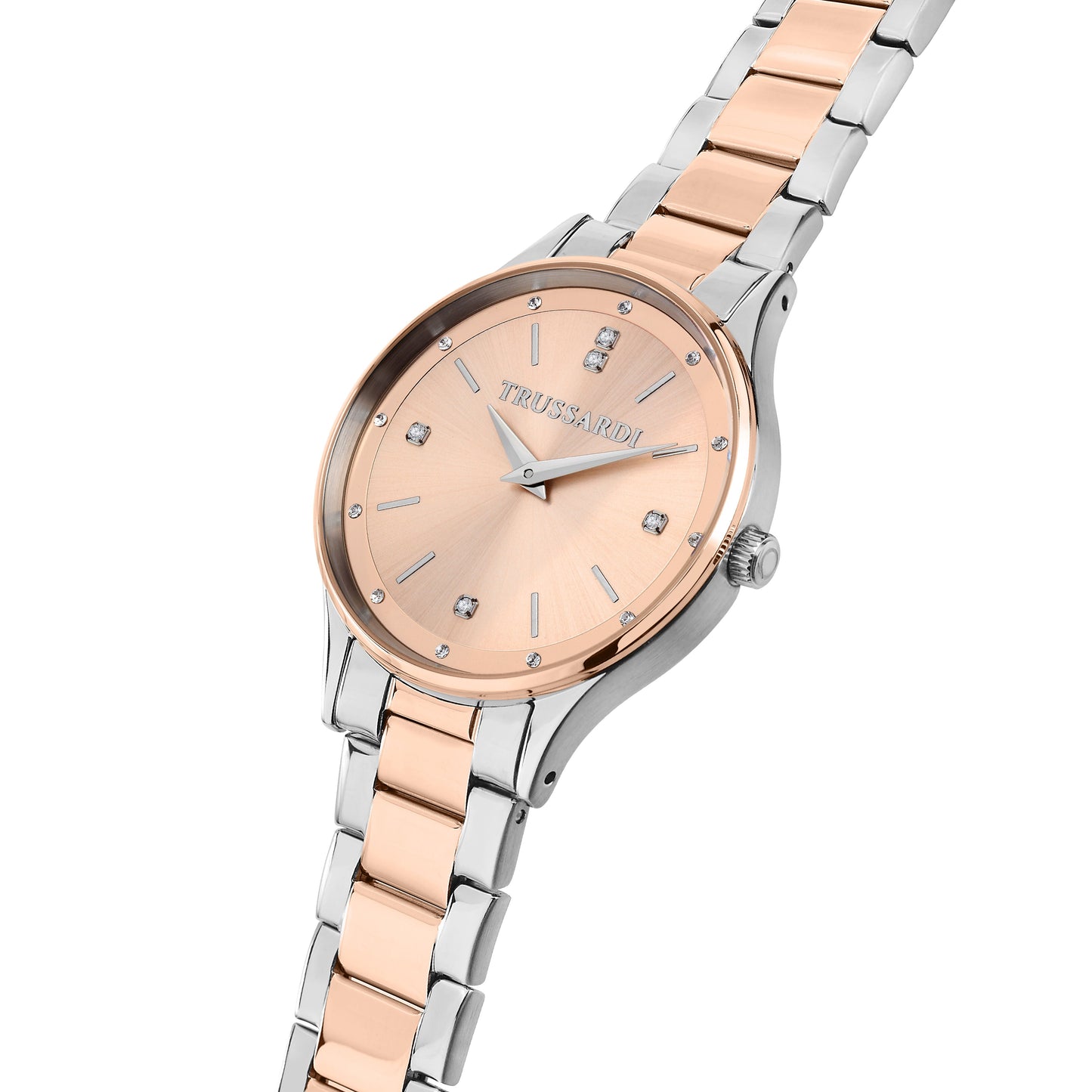 Orologio Donna TRUSSARDI della collezione T-STAR. Orologio con movimento MVT.GL24, funzione Solo tempo. 2H. Quadrante: 3 lancette indice di cristallo & UPMR, finitura acciaio spazzolato e raffinato, colore ORO ROSA. SUNRAY. Tipo cinturino: Cap-Folded. Materiale cinturino: Bracciale in Metallo di colore Oro Rosa. Acciaio. Cassa in Vetro minerale di dimensioni 34. Chiusura: Fibbia DEPLOYANTE con pulsanti. Resistenza all'acqua: 5 ATM. Peso: 84,5 gr. Codice prodotto: R2453152511. Colore: ARGENTO. Materiali: Acciaio. IP oro rosa. Confezione: scatola originale TRUSSARDI. Garanzia: garanzia internazionale TRUSSARDI