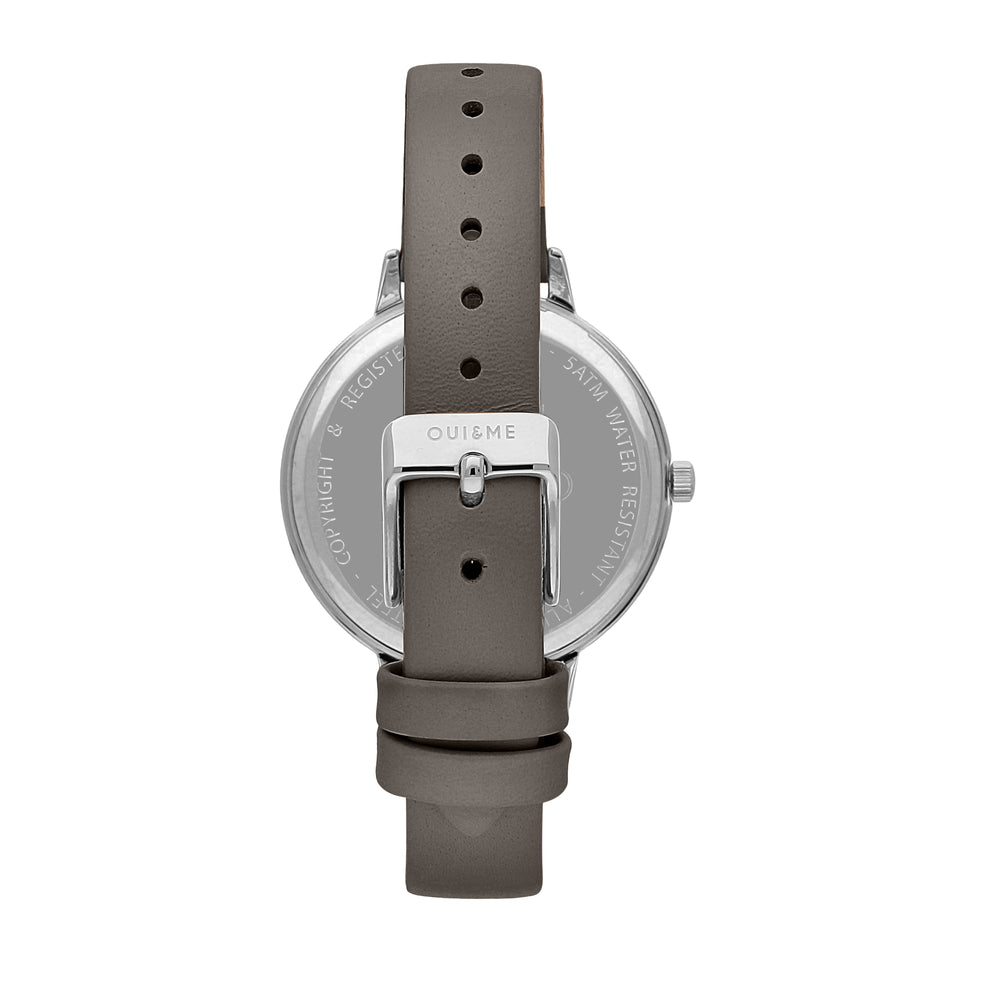 OROLOGIO OUI&ME FLEURETTE ME010110. Orologio da donna Oui & Me, cod. ME010110, Collezione GRANDE FLEURETTE, al quarzo, movimento giapponese, solo tempo, in acciaio, pelle naturale. L'orologio è caratterizzato da un cinturino intercambiabile in pelle naturale, con fibbia. La cassa rotonda, diametro 38 mm, fa da cornice ad un raffinato quadrante grigio scuro e monta un vetro minerale. L'orologio è resistente all'acqua fino a 5 ATM. Confezione: Scatola Originale Oui&Me. Garanzia: Garanzia Internazionale Oui&Me.