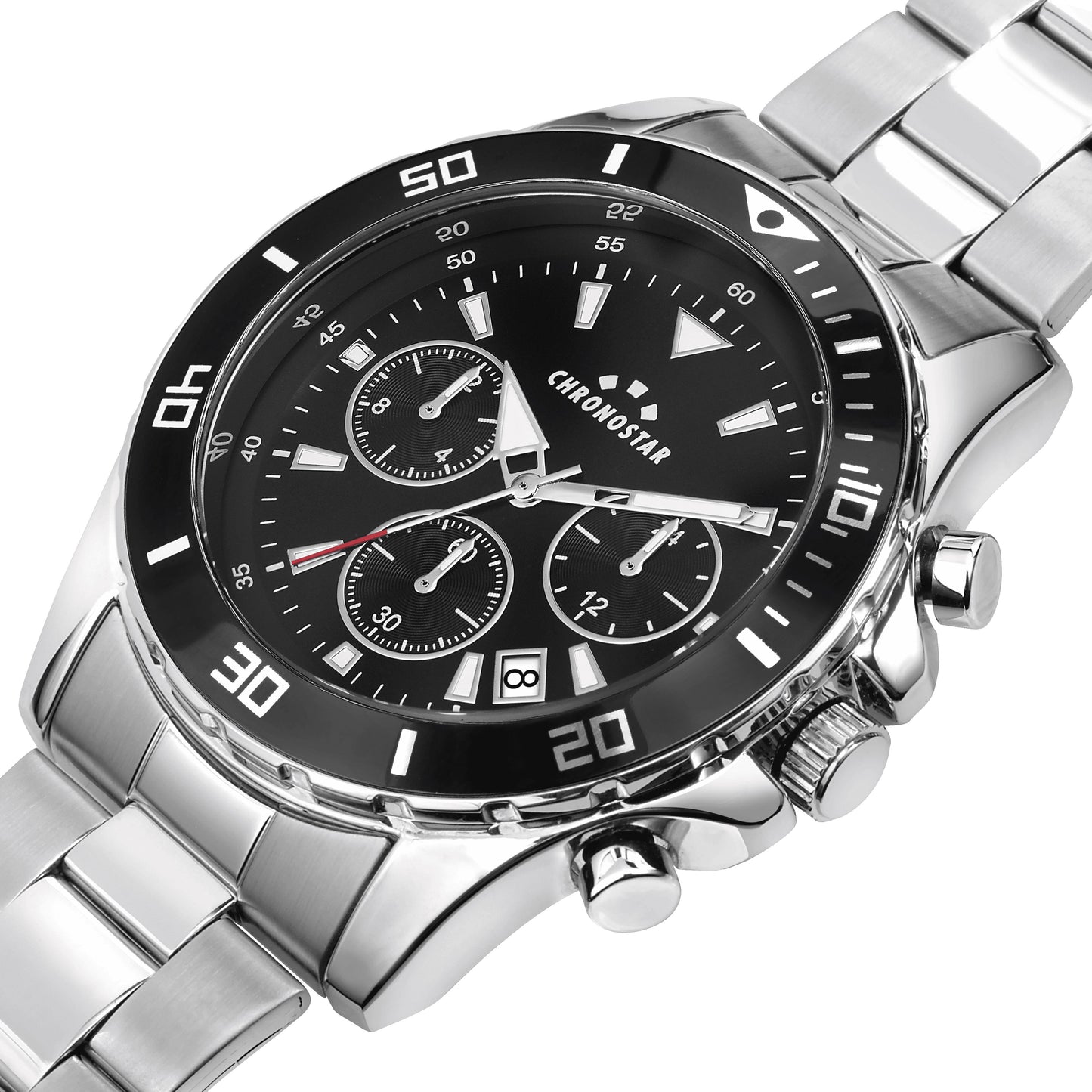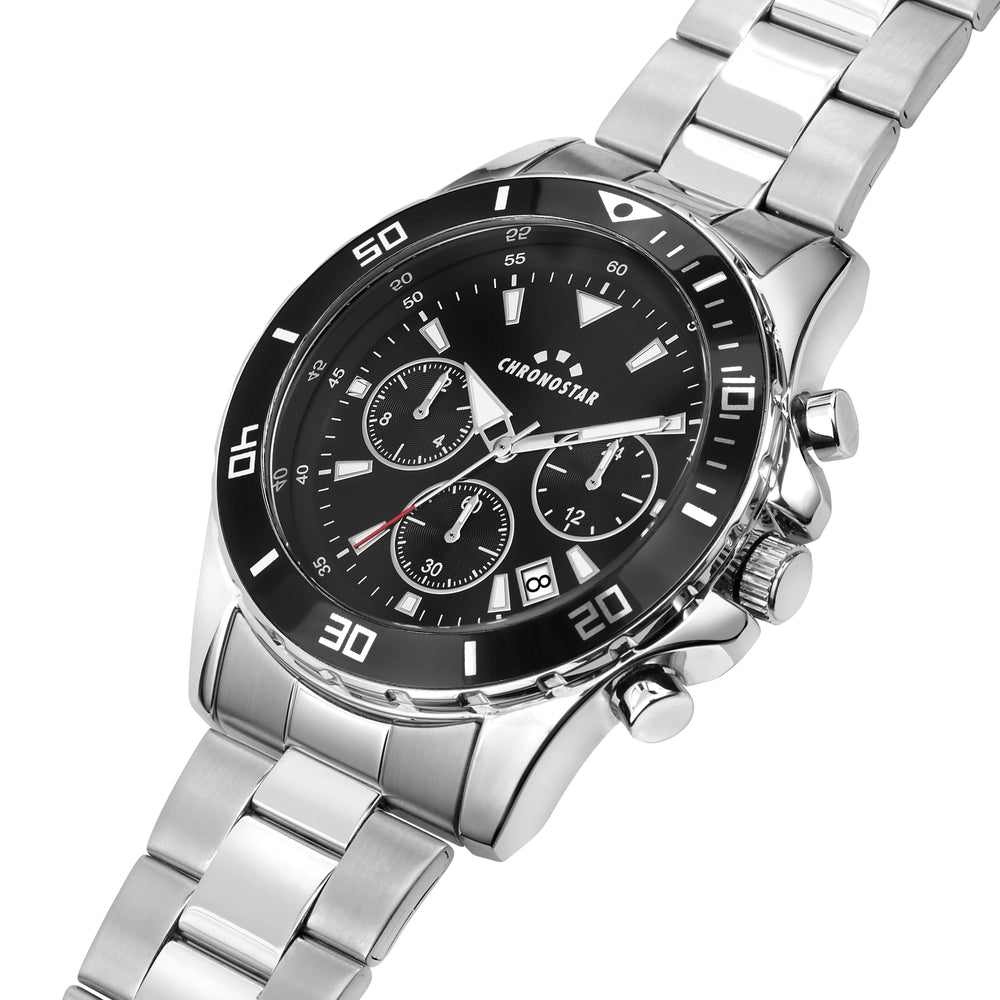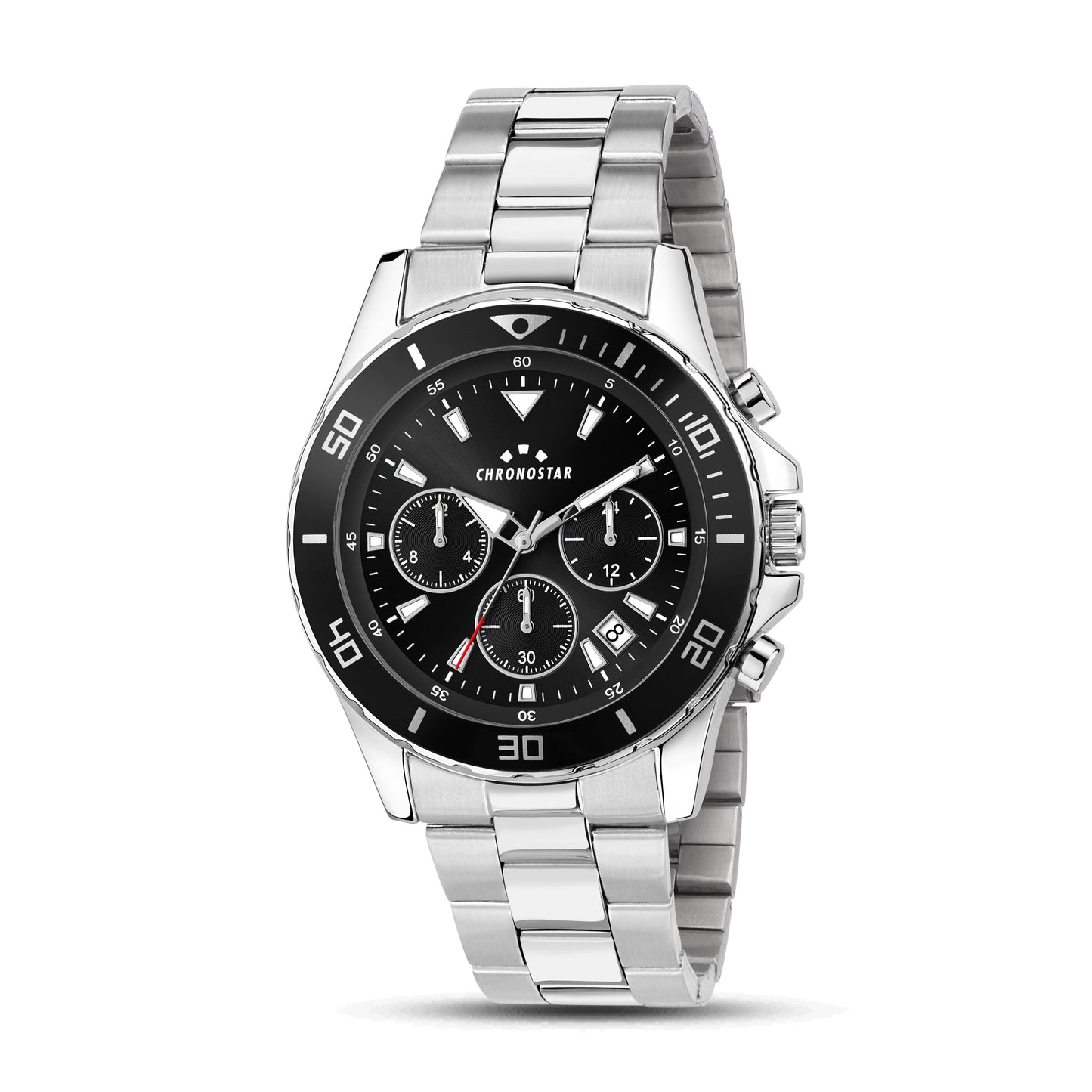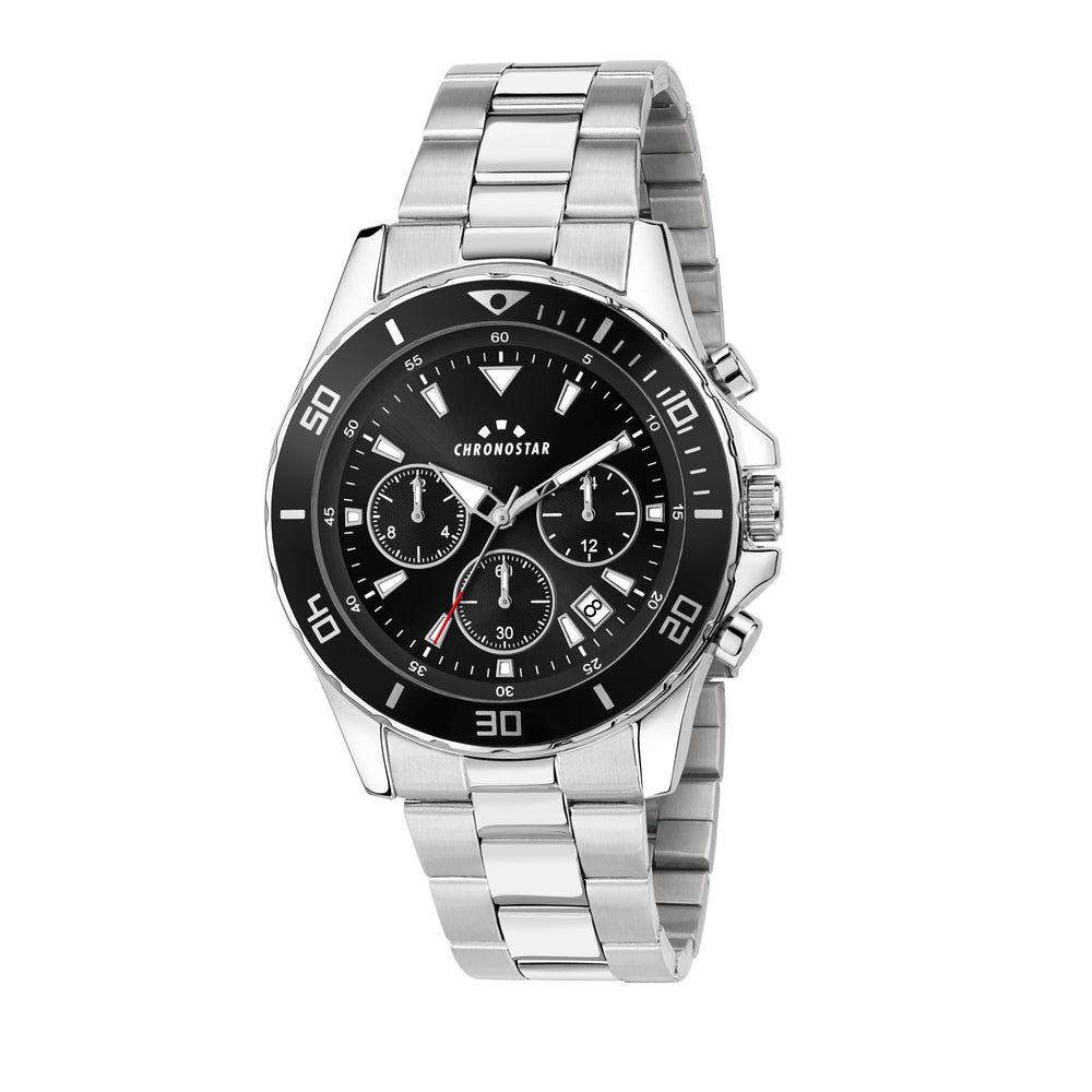 Orologio Uomo CHRONOSTAR della collezione CAPTAIN. Orologio con movimento MVT VD33A14 CHR DATE 4.5H WHITE B/G, funzione Multifunzione. Quadrante: Multifunzione 3 contattori+datario a ore 4.5, finitura Lega. Lucido, colore NERO. SUNRAY. Tipo cinturino: Piegato. Materiale cinturino: Bracciale in Metallo di colore Acciaio. Cassa in Vetro minerale di dimensioni 43. Chiusura: Chiusura di sicurezza. Resistenza all'acqua: 3 ATM. Peso: 127 gr. Codice prodotto: R3753291007. Colore: ARGENTO. Materiali: Lega. Acciaio. Confezione: scatola originale CHRONOSTAR. Garanzia: garanzia internazionale CHRONOSTAR