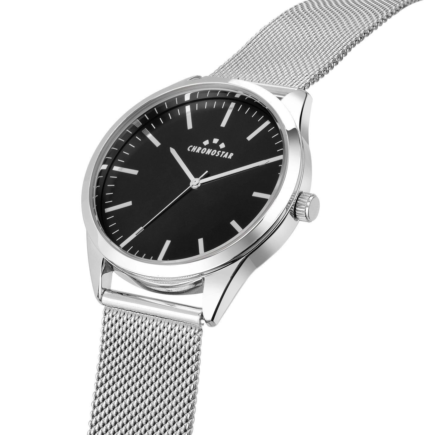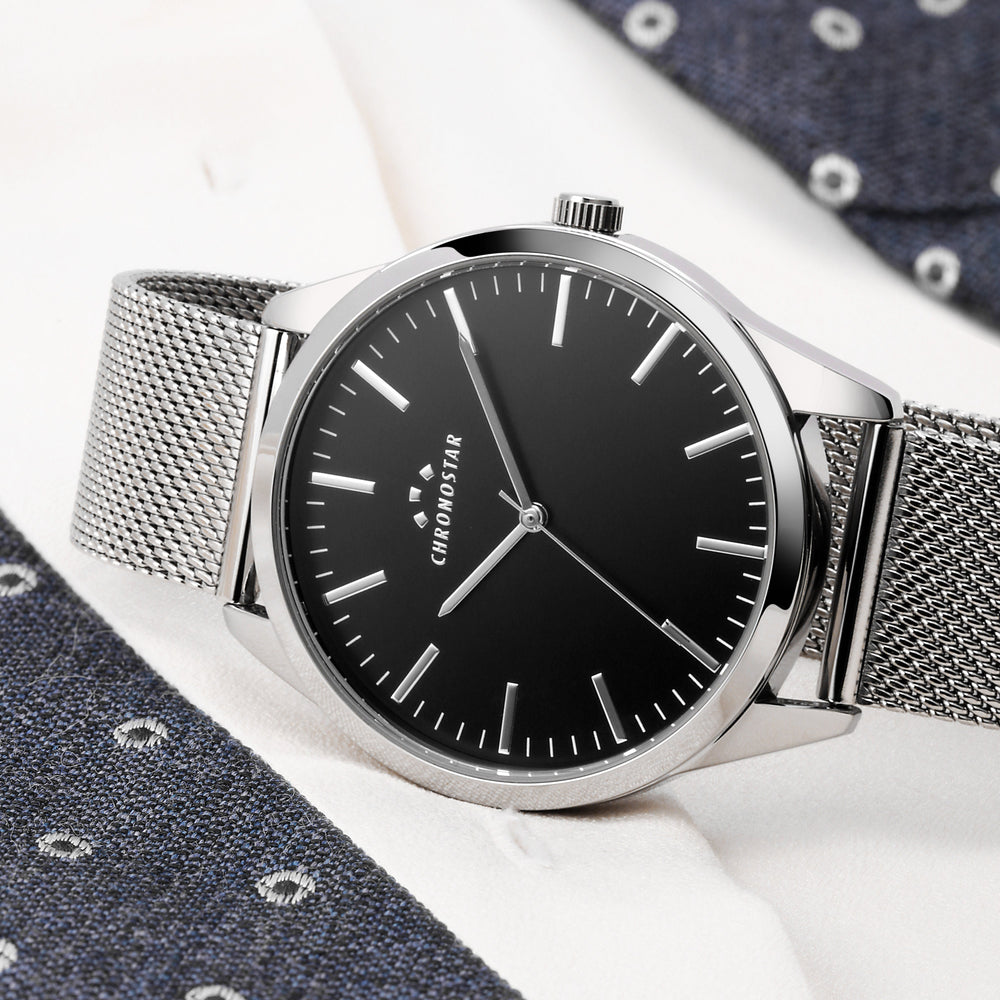 Orologio Uomo CHRONOSTAR della collezione CLASSIQUE. Orologio con movimento MVT. M2035, funzione Solo tempo. 3H. Quadrante: 3 lancette indici, finitura Lega. Lucido, colore NERO. Tipo cinturino: Mesh Band. Materiale cinturino: Bracciale in Metallo di colore Acciaio. Cassa in Vetro minerale di dimensioni 41. Chiusura: Clip e gancio. Resistenza all'acqua: 3 ATM. Peso: 76 gr. Codice prodotto: R3753298009. Colore: ARGENTO. Materiali: Acciaio. Lega. Confezione: scatola originale CHRONOSTAR. Garanzia: garanzia internazionale CHRONOSTAR
