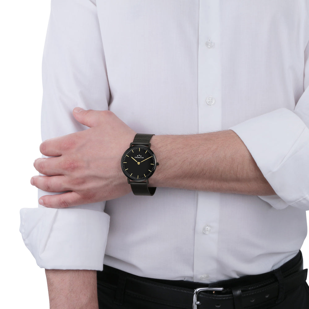 Orologio Uomo CHRONOSTAR della collezione PREPPY. Orologio con movimento MVT TMI VJ20 2H TYPE M, funzione Solo tempo. 2H. Quadrante: 2 lancette UPMR, finitura Lega. Lucido, colore NERO. Tipo cinturino: Mesh Band. Materiale cinturino: Bracciale in Metallo di colore Nero. Cassa in Vetro minerale di dimensioni 42. Chiusura: Clip e gancio. Resistenza all'acqua: Impermeabile. Peso: 65,13 gr. Codice prodotto: R3753252023. Colore: NERO. Materiali: Lega. acciaio. PVD nero. Confezione: scatola originale CHRONOSTAR. Garanzia: garanzia internazionale CHRONOSTAR