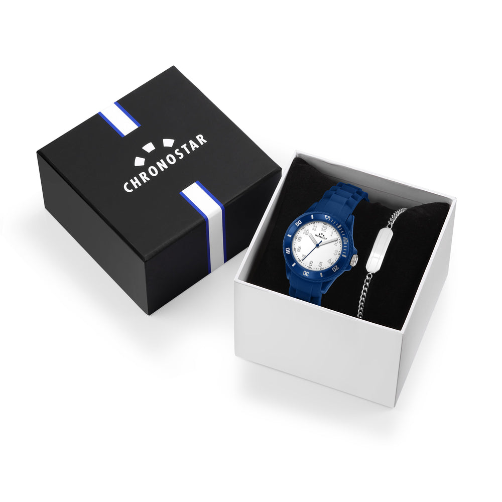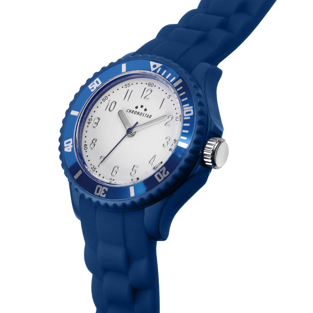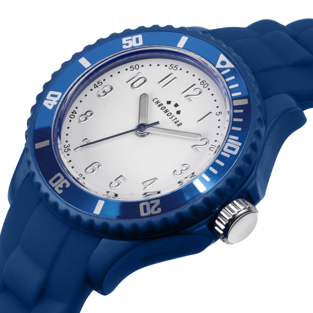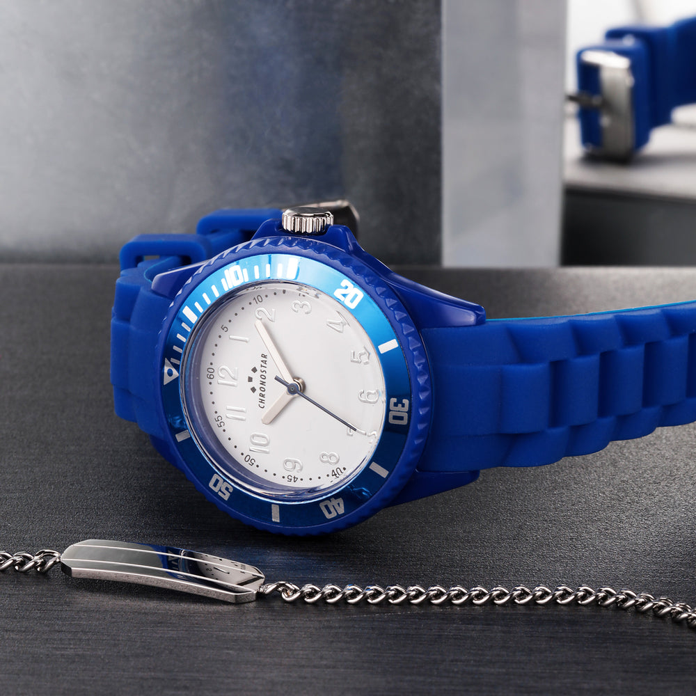 Orologio Uomo CHRONOSTAR della collezione ROCKET. Orologio con movimento MVT. M2035, funzione Solo tempo. 3H. Quadrante: 3 lancette indici, finitura ABS. lucido, colore BIANCO. OPACO. Tipo cinturino: silicone. Materiale cinturino: Silicone di colore Blu. Cassa in Lente in plastica di dimensioni 35. Chiusura: Fibbia ARDIGLIONE. Resistenza all'acqua: 3 ATM. Peso: 35,5 gr. Codice prodotto: R3751288014. Colore: BLU. Materiali: ABS. Silicone. Confezione: scatola originale CHRONOSTAR. Garanzia: garanzia internazionale CHRONOSTAR
