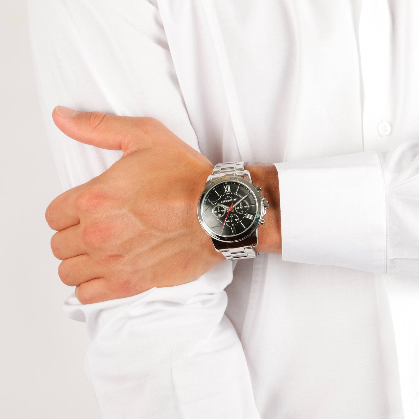 Orologio Uomo CHRONOSTAR della collezione SPORTY. Orologio con movimento MVT.VD34A(TYPE M), funzione Multifunzione. Quadrante: Multifunzione 3 contattori, finitura Lega. Lucido, colore NERO. OPACO. Tipo cinturino: Cap-Folded. Materiale cinturino: Bracciale in Metallo di colore Acciaio. Cassa in Vetro minerale di dimensioni 44. Chiusura: Fibbia DEPLOYANTE con pulsanti. Resistenza all'acqua: 3 ATM. Peso: 142,65 gr. Codice prodotto: R3753271004. Colore: ARGENTO. Materiali: Lega + PVD argento. acciaio. Confezione: scatola originale CHRONOSTAR. Garanzia: garanzia internazionale CHRONOSTAR