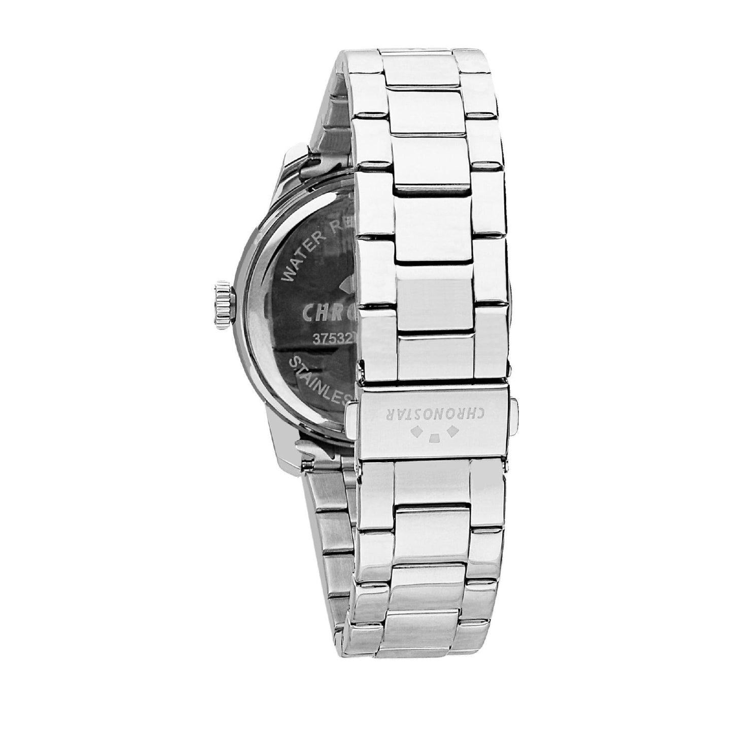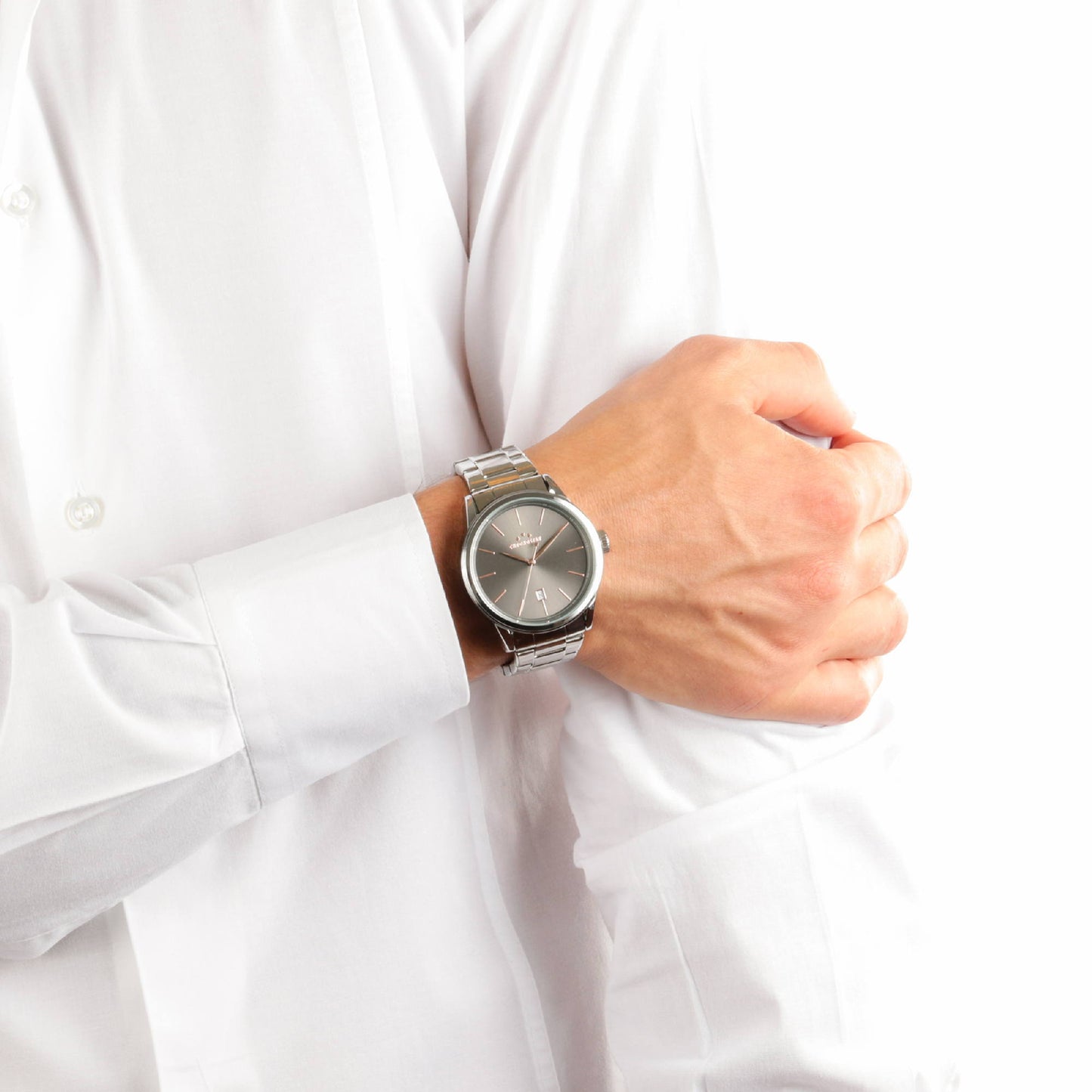 Orologio Uomo CHRONOSTAR della collezione URANO. Orologio con movimento MVT. VJ42B11 STEM H3 DATE H3, funzione tempo e data. Quadrante: 3 lancette UPMR arabi c/datario a ore 6, finitura Lega. Lucido, colore NERO. SUNRAY. Tipo cinturino: Cap-Folded. Materiale cinturino: Bracciale in Metallo di colore Acciaio. Cassa in Vetro minerale di dimensioni 43. Chiusura: Fibbia DEPLOYANTE con pulsanti. Resistenza all'acqua: 3 ATM. Peso: 136,95 gr. Codice prodotto: R3753270004. Materiali: Lega + PVD argento. acciaio. Confezione: scatola originale CHRONOSTAR. Garanzia: garanzia internazionale CHRONOSTAR