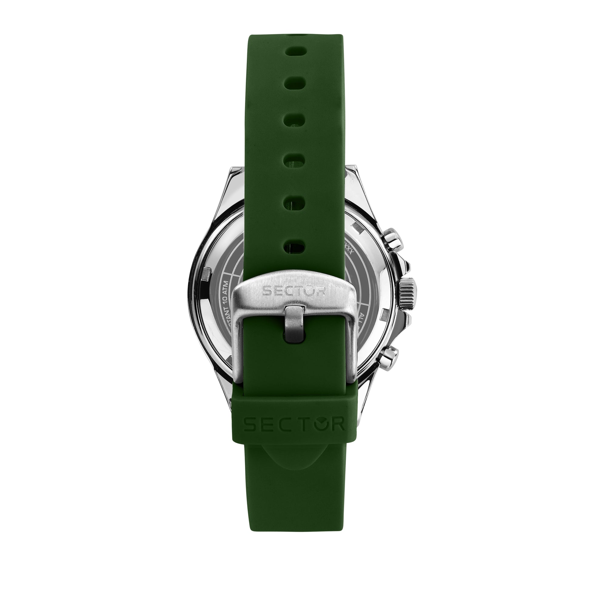 OROLOGIO UOMO SECTOR 230 R3251161051. Orologio Multifunzione con movimento MVT.VD34A(TYPE M). Colore: ARGENTO. Materiali: Acciaio, Silicone. Quadrante in Vetro minerale di colore VERDE, SUNRAY con Multifunzione indice UPMR luminoso, finitura in acciaio spazzolato e raffinato. Dimensioni cassa: 39. Cinturino in Silicone di tipo silicone e di colore Verde. Chiusura: Fibbia ARDIGLIONE. Confezione: scatola originale SECTOR. Prodotto con garanzia internazionale SECTOR.