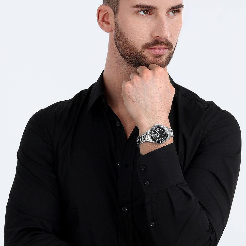 Orologio Uomo SECTOR della collezione 230. Orologio con movimento MVT. M2115, funzione tempo e data. Quadrante: 3 lancette UPRM /datario a ore 3, finitura Lucido e satinato, colore NERO. SUNRAY. Tipo cinturino: Cap-Folded. Materiale cinturino: Bracciale in Metallo di colore Acciaio. Cassa in Vetro minerale di dimensioni 39. Chiusura: Fibbia Diver c/pulsanti e blocco di sicurezza. Resistenza all'acqua: 10 ATM. Peso: 129 gr. Codice prodotto: R3253161048. Colore: ARGENTO. Materiali: Acciaio. Confezione: scatola originale SECTOR. Garanzia: garanzia internazionale SECTOR