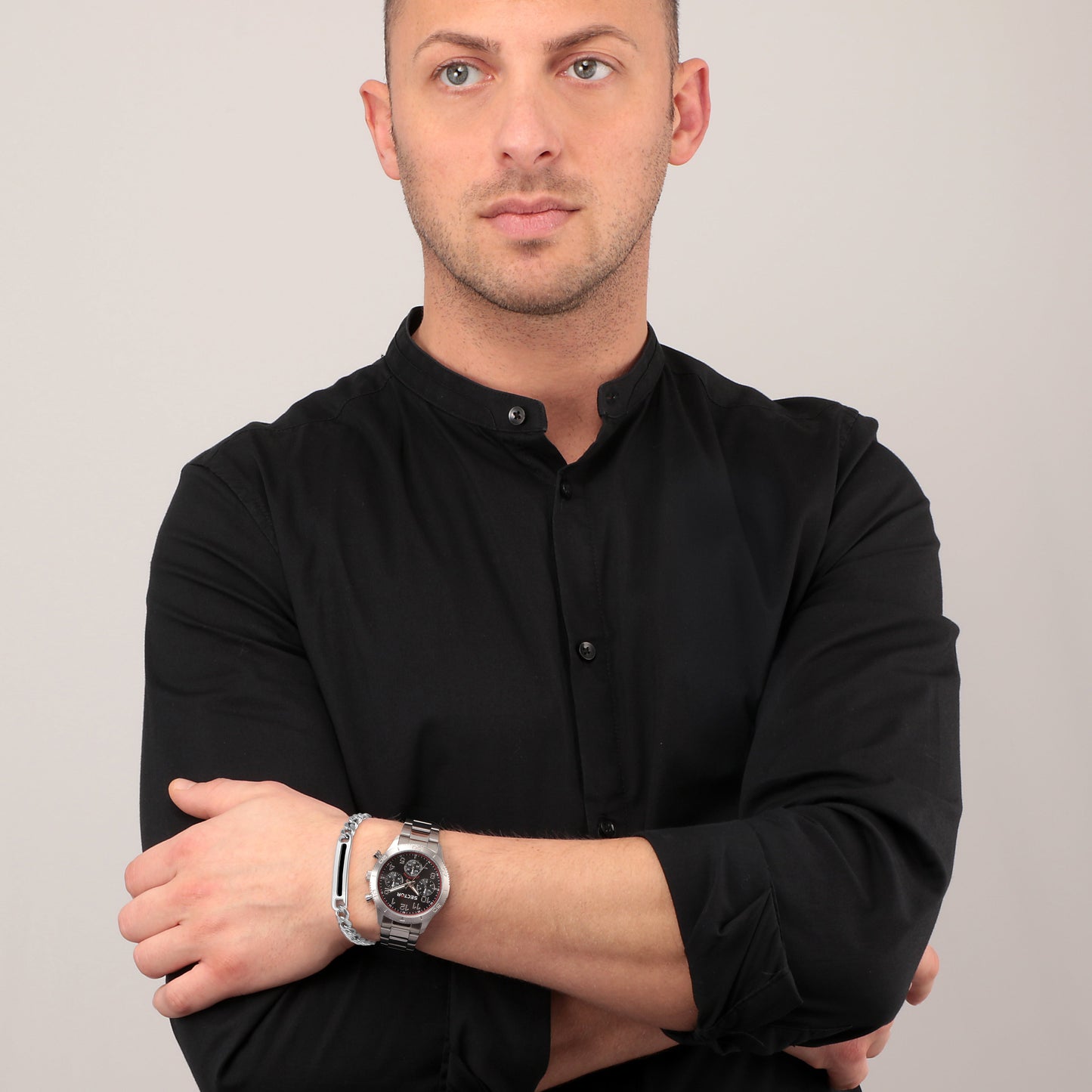 Orologio Uomo SECTOR della collezione 270. Orologio con movimento MVT.VD34A(TYPE M), funzione Multifunzione. Quadrante: Multifunzione UPMR, finitura Lucido e satinato, colore NERO. Tipo cinturino: Piegato. Materiale cinturino: Bracciale in Metallo di colore Acciaio. Cassa in Vetro minerale di dimensioni 37. Chiusura: Fibbia BOX con pulsanti. Resistenza all'acqua: 5 ATM. Peso: 103,6 gr. Codice prodotto: R3253578020. Colore: ARGENTO. Materiali: Acciaio. Confezione: scatola originale SECTOR. Garanzia: garanzia internazionale SECTOR