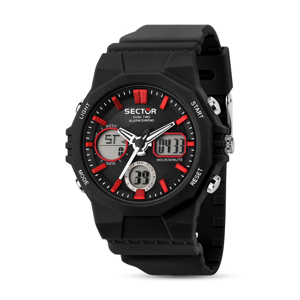 Orologio Uomo SECTOR della collezione EX-40. Orologio con movimento MVT.DIGITAL, funzione Digitale. Quadrante: 3 lancette indici UPMR, finitura Policarbonato, colore NERO. SUNRAY. Tipo cinturino: iniezione pu. Materiale cinturino: Pu di colore Nero. Cassa in Lente in plastica di dimensioni 44. Chiusura: Fibbia ARDIGLIONE. Resistenza all'acqua: 5 ATM. Peso: 95 gr. Codice prodotto: R3251238001. Colore: BIANCO/NERO. Materiali: PC. PU. Confezione: scatola originale SECTOR. Garanzia: garanzia internazionale SECTOR