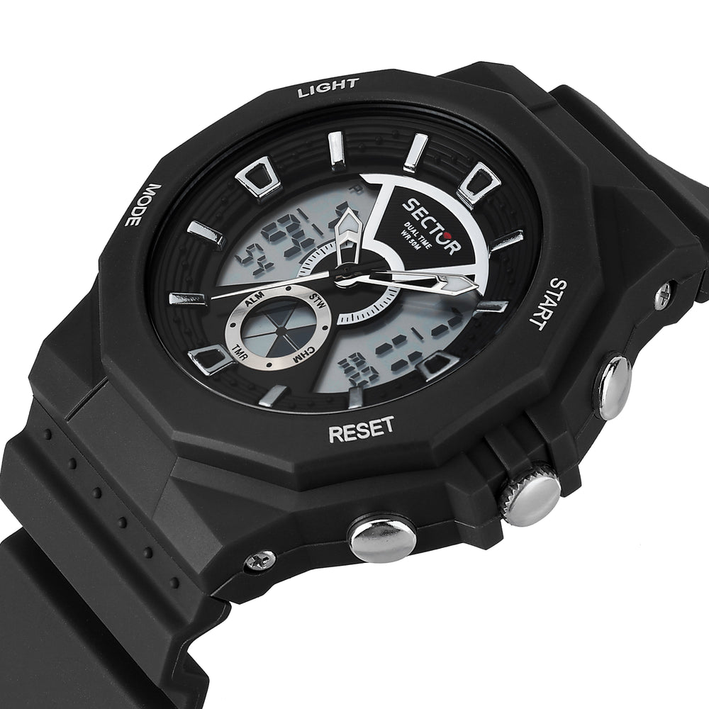 Orologio Uomo SECTOR della collezione EX-41. Orologio con movimento MVT.DIGITAL, funzione Digitale. Quadrante: 3 lancette indici UPMR, finitura Policarbonato, colore NERO. SUNRAY. Tipo cinturino: iniezione pu. Materiale cinturino: Pu di colore Nero. Cassa in Lente in plastica di dimensioni 53. Chiusura: Fibbia ARDIGLIONE. Resistenza all'acqua: 5 ATM. Peso: 95 gr. Codice prodotto: R3251237001. Colore: BIANCO/NERO. Materiali: PC. PU. Confezione: scatola originale SECTOR. Garanzia: garanzia internazionale SECTOR