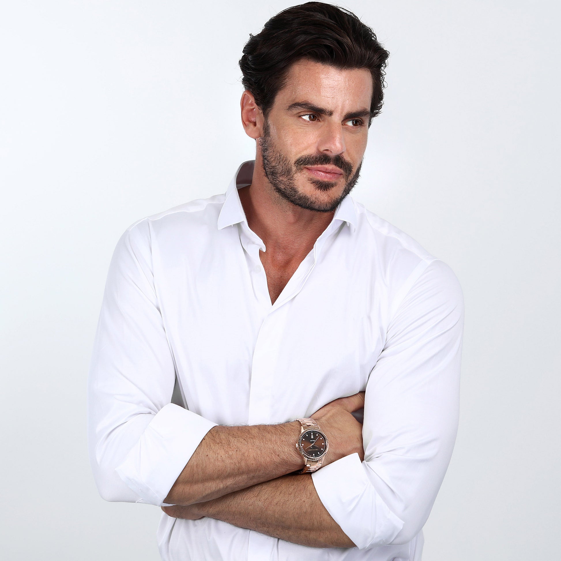 Orologio Uomo TRUSSARDI della collezione T-BENT. Orologio con movimento MVT.VJ42B12 STEM H3 DATE H6, funzione tempo e data. Quadrante: 3 lancette indici UPMR c/datario a ore 6, finitura Lucido e satinato, colore MARRONE. SUNRAY. Tipo cinturino: Cap-Folded. Materiale cinturino: Bracciale in Metallo di colore Oro Rosa. Cassa in Vetro minerale di dimensioni 43. Chiusura: Fibbia DEPLOYANTE con pulsanti. Resistenza all'acqua: 5 ATM. Peso: 130,4 gr. Codice prodotto: R2453141008. Materiali: Acciaio. PVD Oro rosa. Confezione: scatola originale TRUSSARDI. Garanzia: garanzia internazionale TRUSSARDI