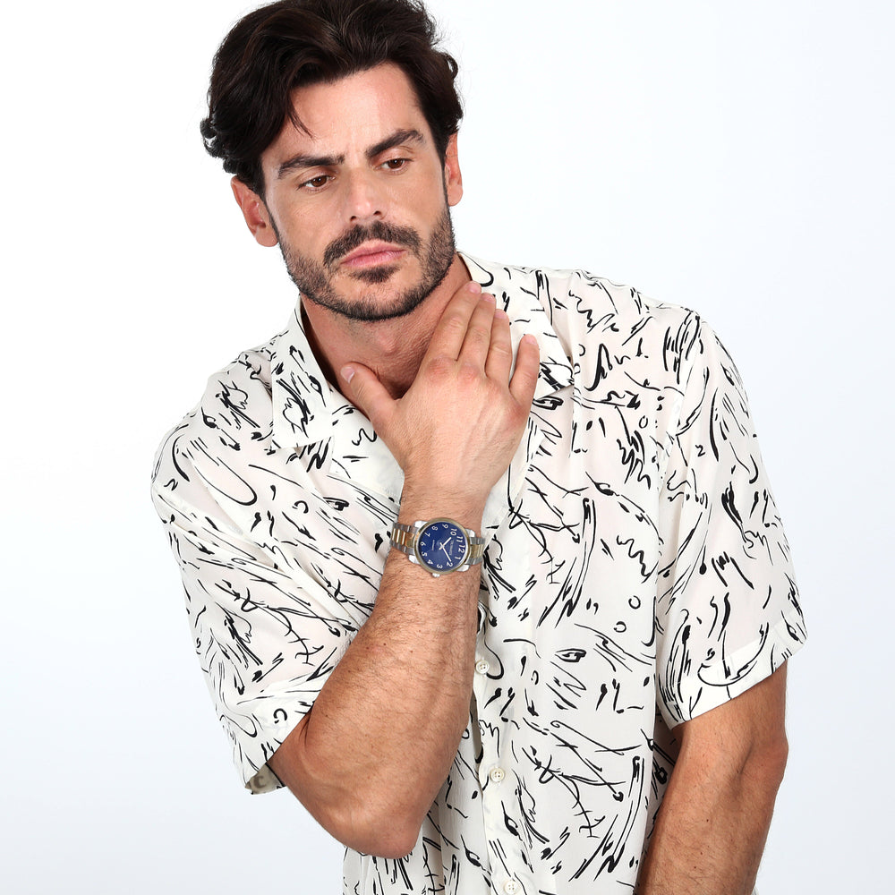 Orologio Uomo TRUSSARDI della collezione T-CITY. Orologio con movimento MVT AUTO NH70, funzione Automatico. Quadrante: 3 lancette UPMR num arabi, finitura Lucido e satinato, colore BLU. Tipo cinturino: Semi-Solid. Materiale cinturino: Bracciale in Metallo di colore Oro. Acciaio. Cassa in Vetro minerale, trattamento zaffiro di dimensioni 40. Chiusura: Fibbia DEPLOYANTE con pulsanti. Resistenza all'acqua: 5 ATM. Peso: 83,1 gr. Codice prodotto: R2423154001. Materiali: Acciaio. PVD Oro. Confezione: scatola originale TRUSSARDI. Garanzia: garanzia internazionale TRUSSARDI