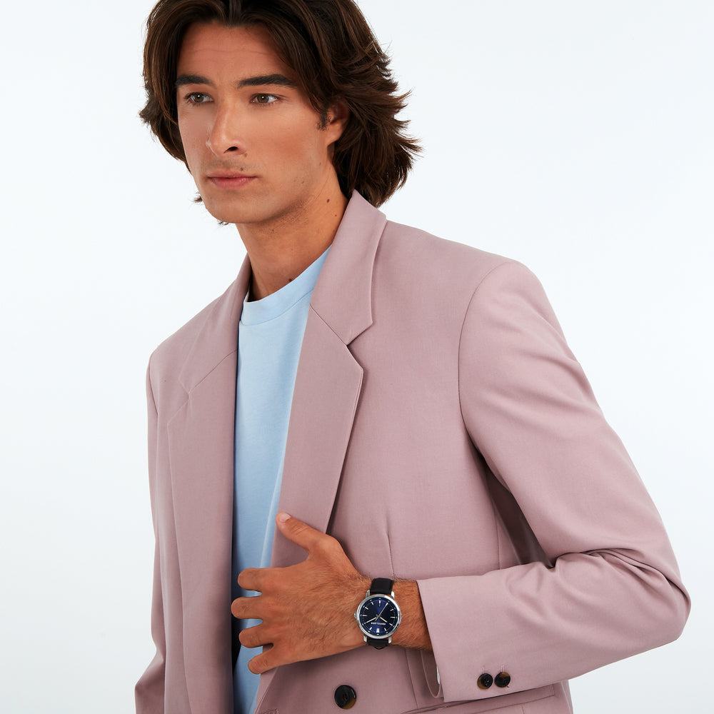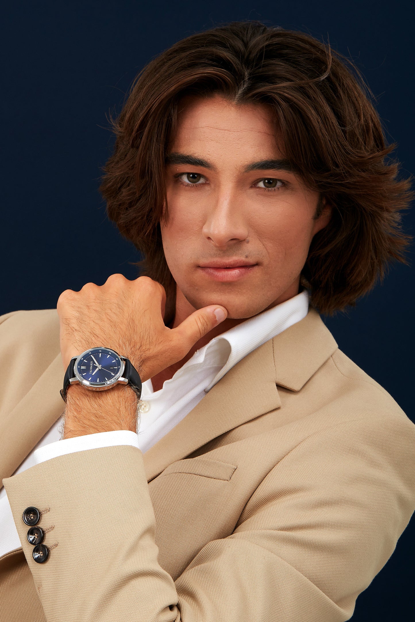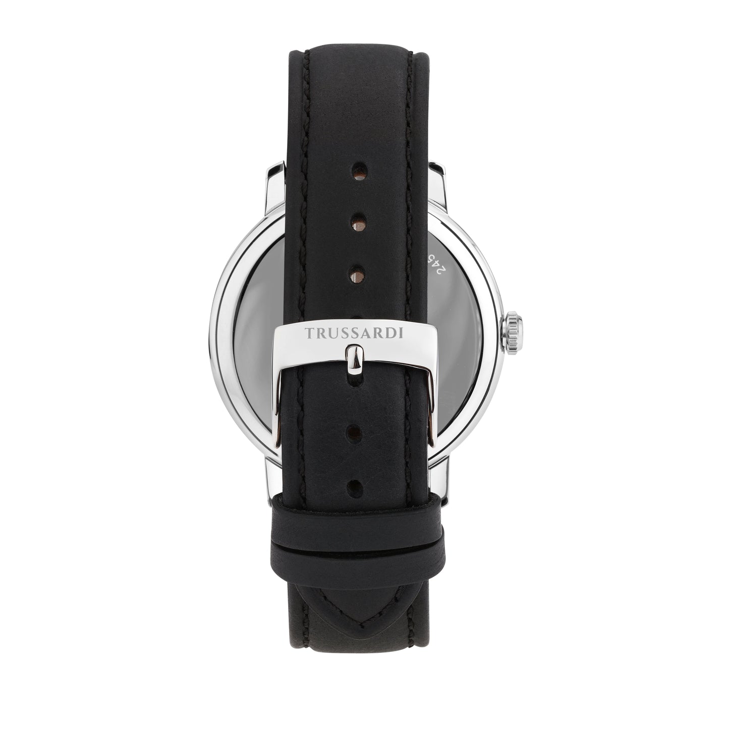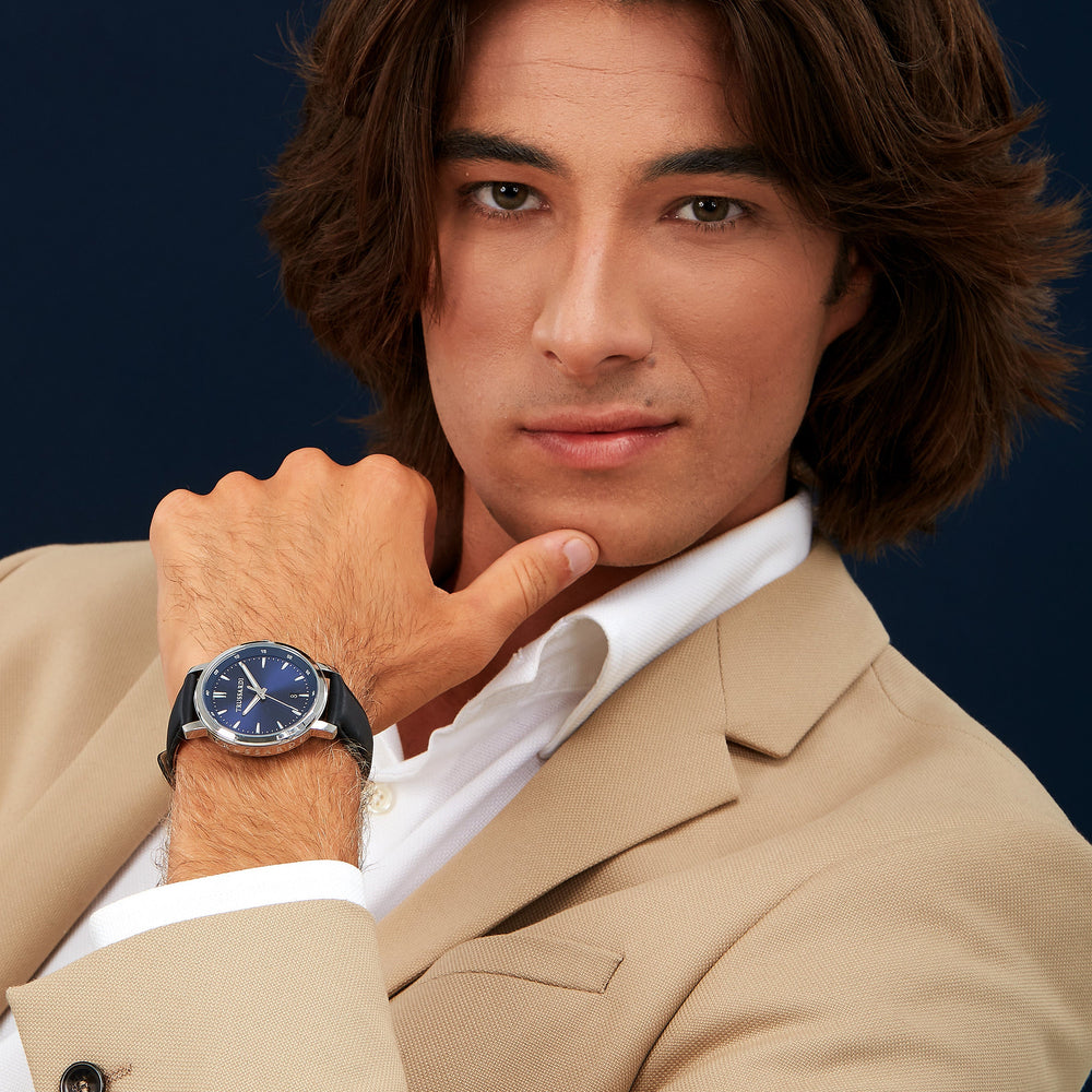 Orologio Uomo TRUSSARDI della collezione T-COUPLE. Orologio con movimento MVT. MIYOTA 2315, funzione tempo e data. Quadrante: 3 lancette indici UPMR c/datario a ore 6, finitura Acciaio. lucido, colore BLU. SUNRAY. Tipo cinturino: Tranciato. Materiale cinturino: Bracciale in Pelle di colore Nero. Cassa in Vetro minerale di dimensioni 41. Chiusura: Fibbia ARDIGLIONE. Resistenza all'acqua: 5 ATM. Peso: 52,2 gr. Codice prodotto: R2451147004. Colore: ARGENTO. Materiali: Acciaio. Pelle naturale. Confezione: scatola originale TRUSSARDI. Garanzia: garanzia internazionale TRUSSARDI